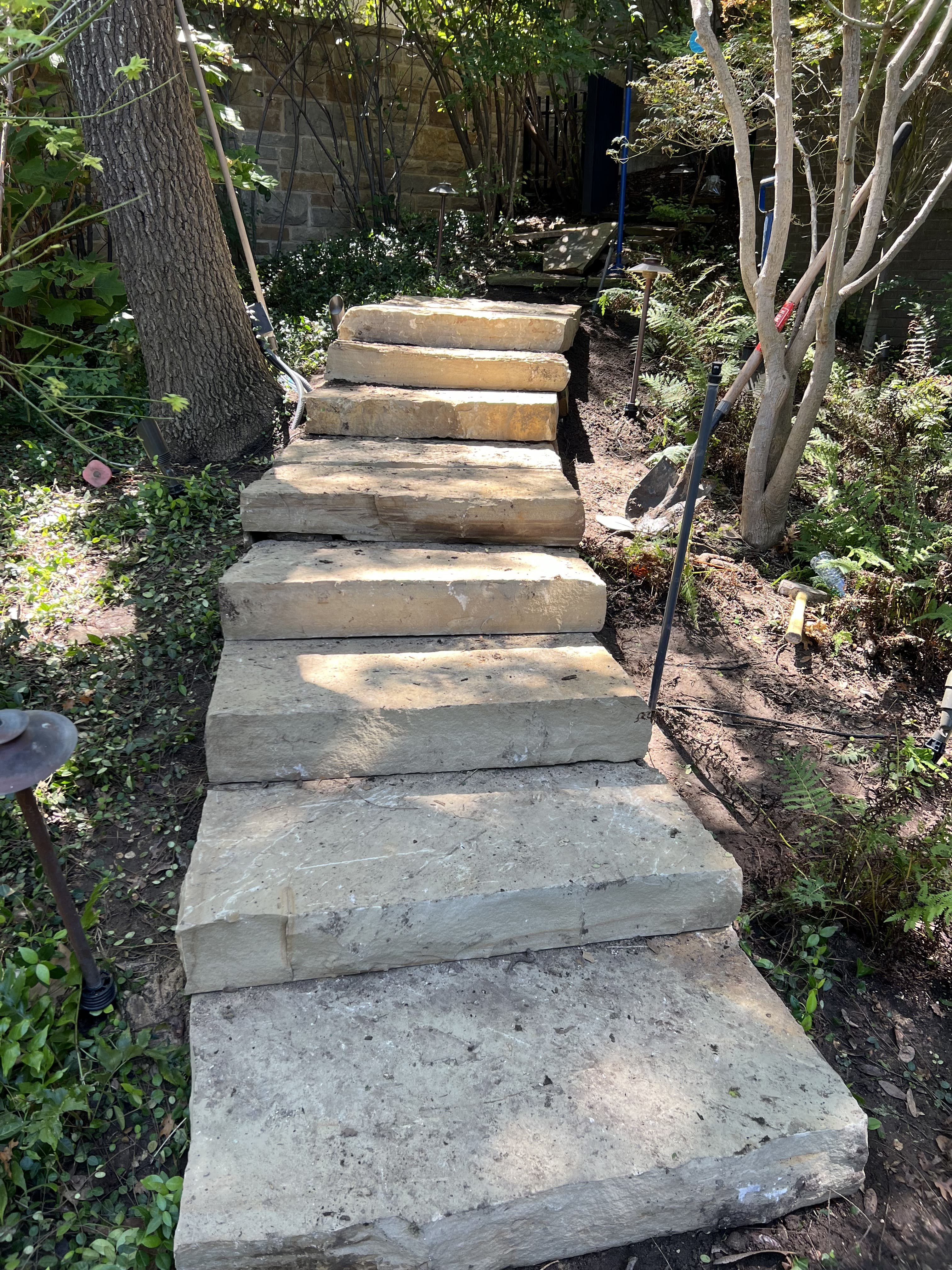 The goal was to create steps that felt solid and secure, without sacrificing the natural look of the landscape. We installed Tumbleweed Swan Steps with gentle curves and added landings in between to improve comfort, balance, and ease of movement.
